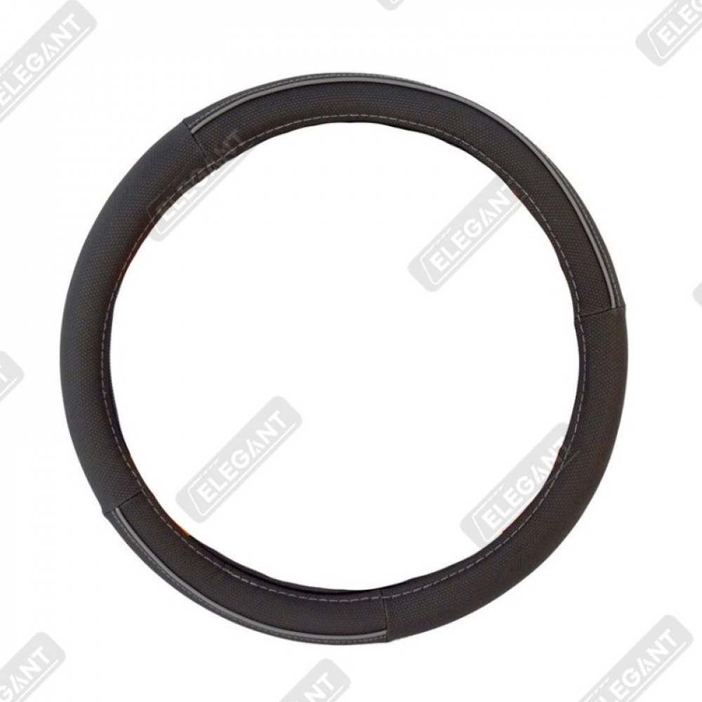 ELEGANT Чохол руля чорний (сіра нітка) М EL 105425