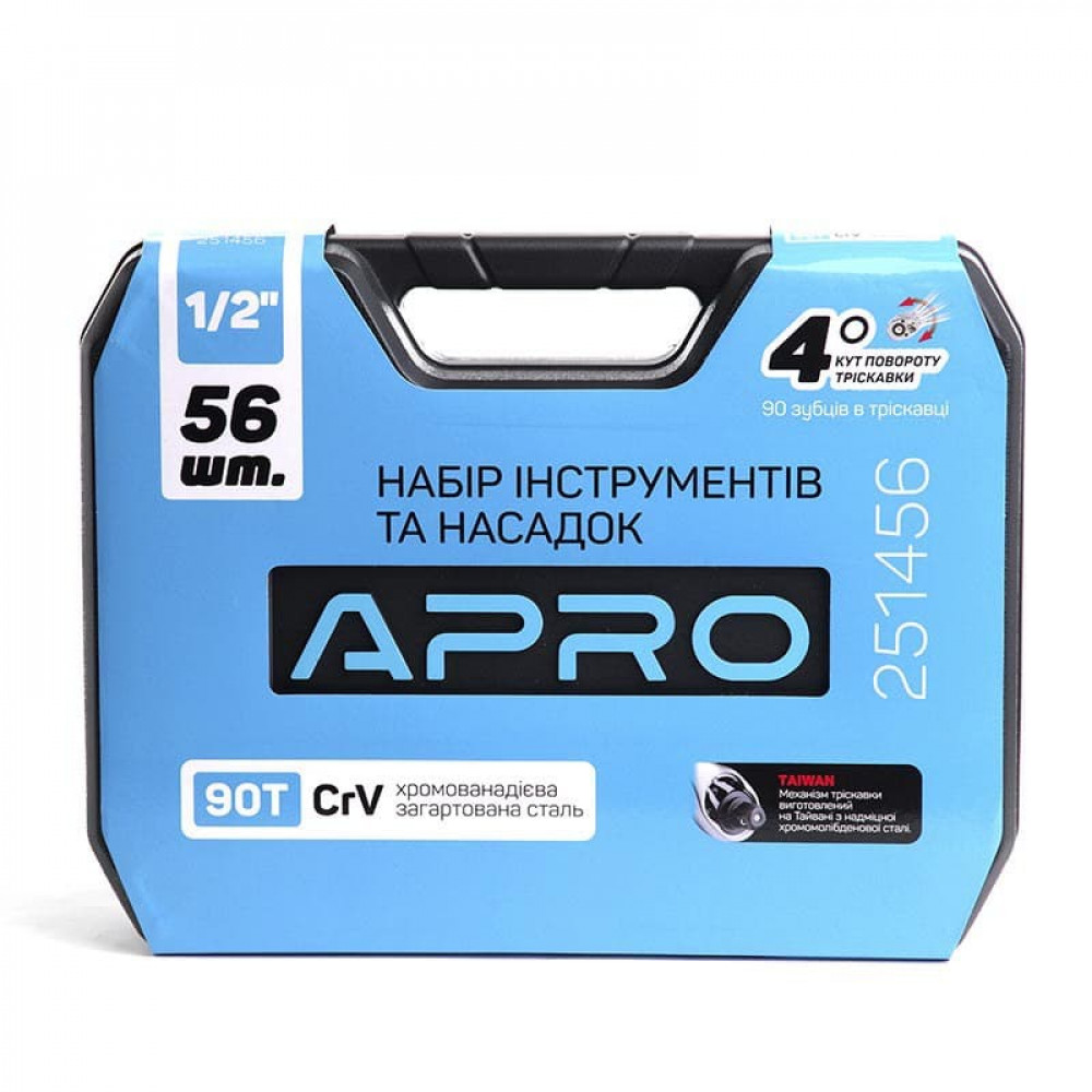 Набір торцевих насадок і біти 52 предмета 1/2" APRO CrV 90Т