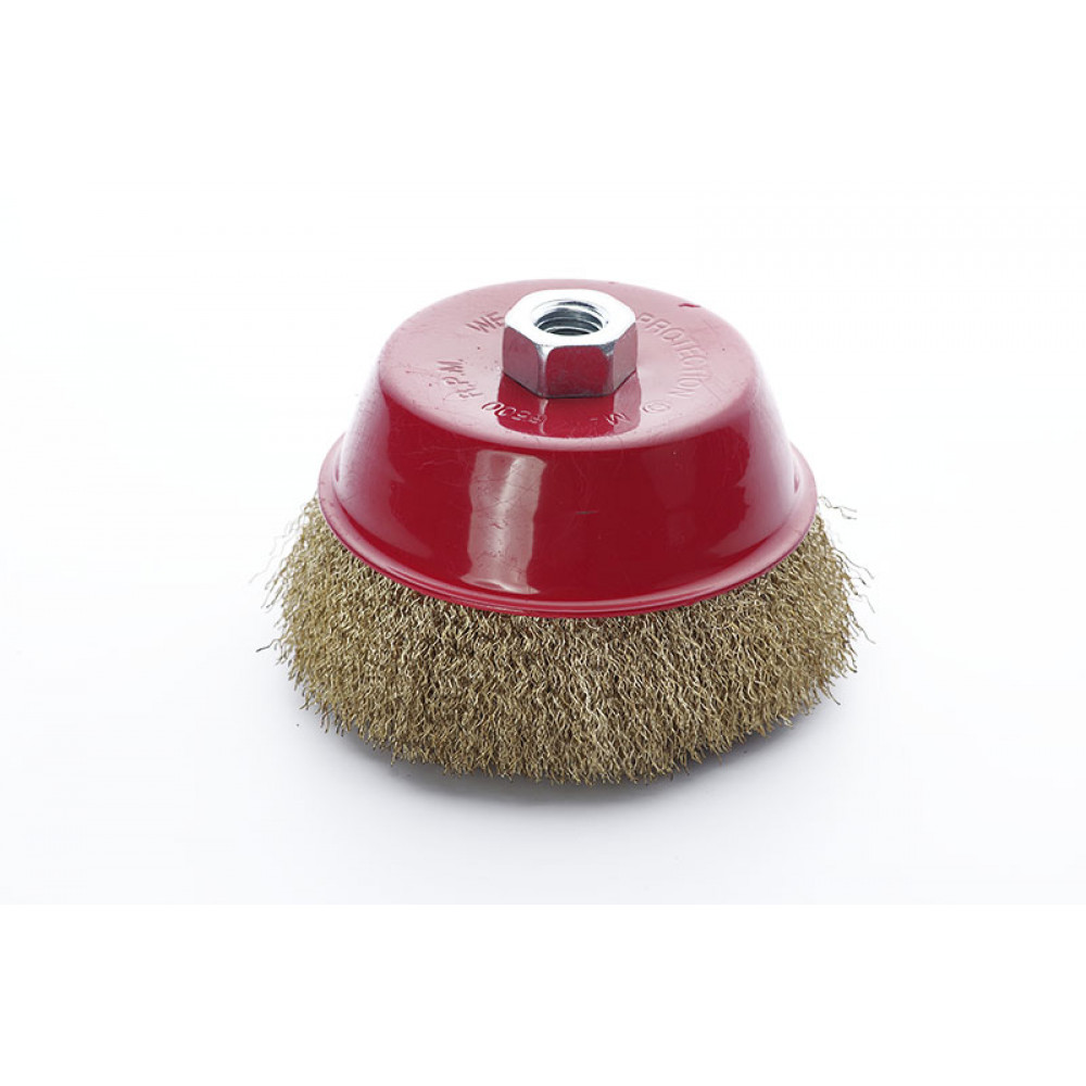 Щітка дротяна чашеподібна 125мм APRO М14*2мм (латунована)