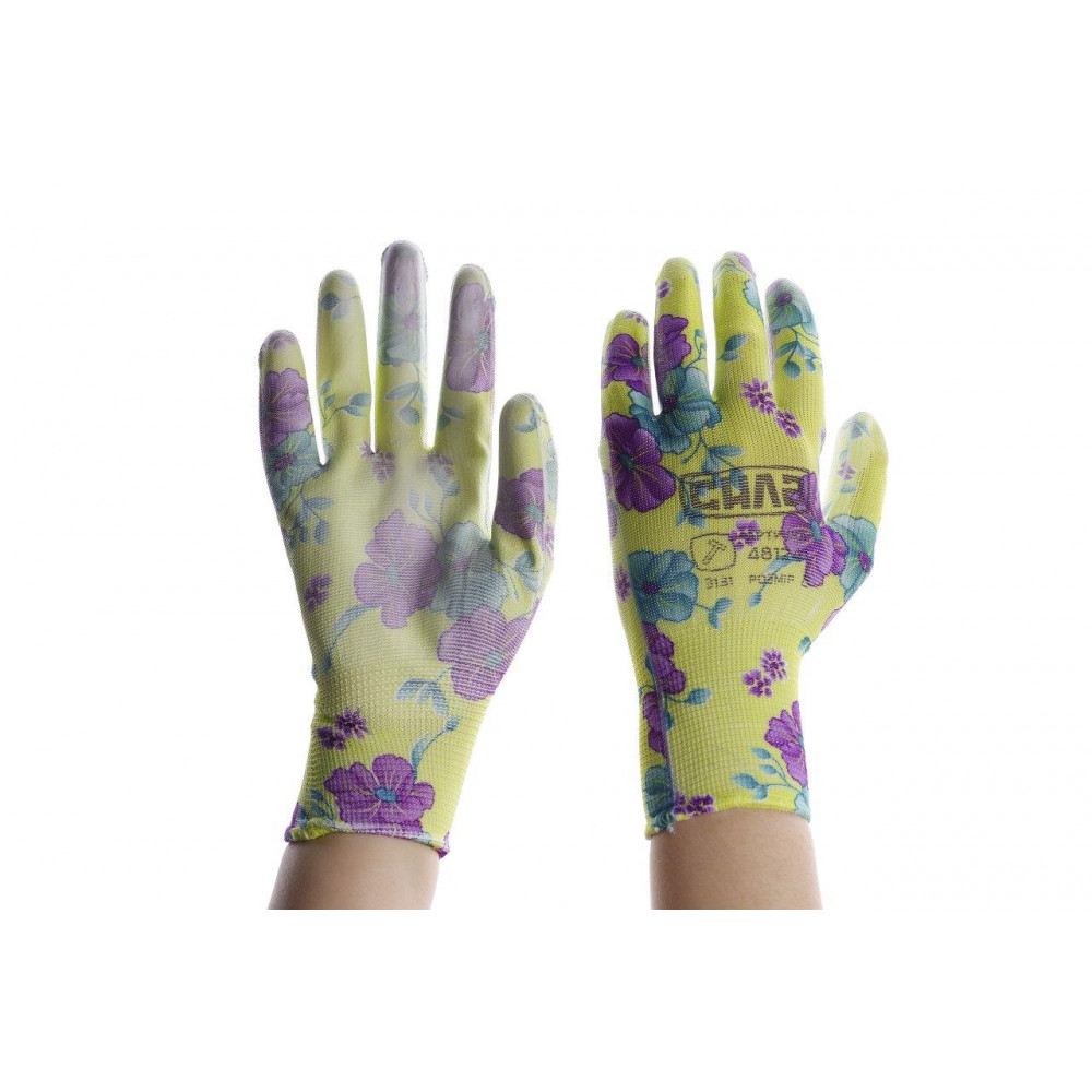 Рукавички синтетичні кольоровий принт Васильки з поліуретановим покриттям 8 розмір СИЛА
