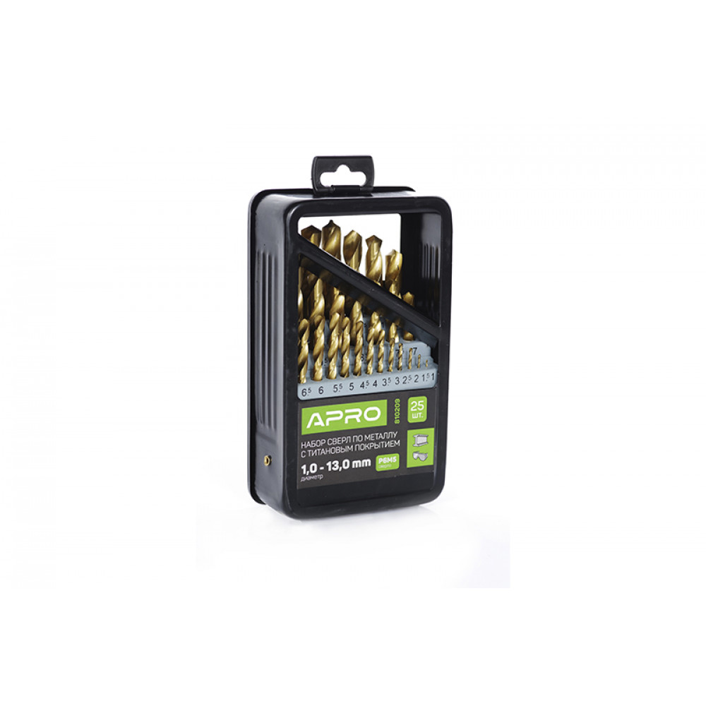 Набір свердел по металу з титановим покриттям 25 шт. 1.0-13.0мм APRO Р6М5 (металевий кейс)