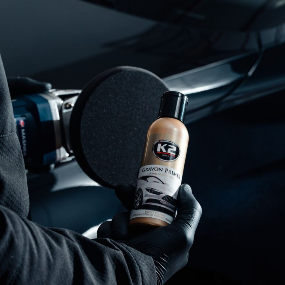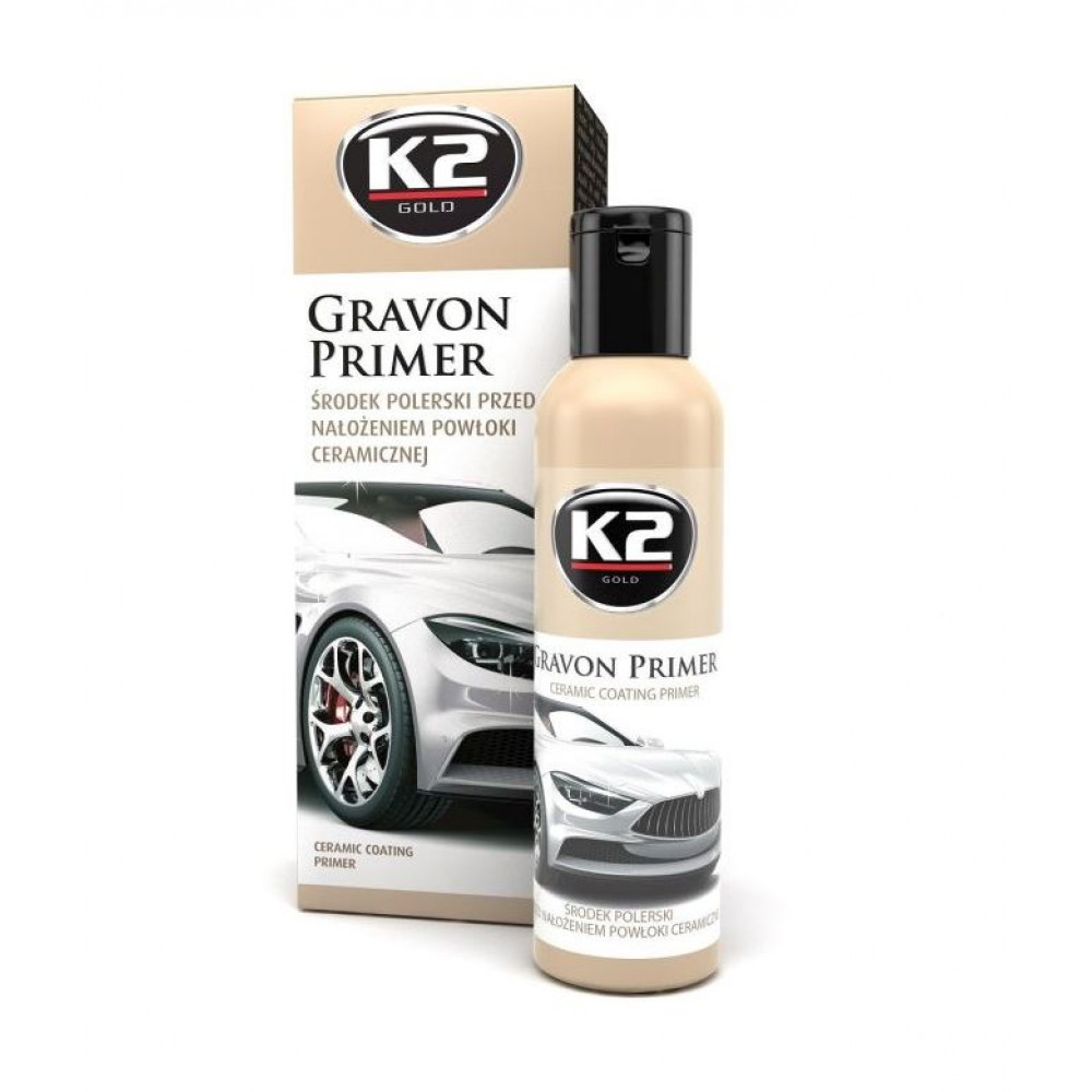 K2 Gravon Primer — це полірувальний засіб, що застосовується безпосередньо на лак перед нанесенням керамічного покриття K2 Gravon (а також інших керамічних і кварцових покриттів). Він неабияк посилює насиченість кольору лаку та підвищує його блиск. Покращує зв'язок і стійкість нанесеного на нього керамічного покриття. Не містить силіконових або абразивних частинок. Також підходить як завершальний полірувальний засіб під час корекції лаку.