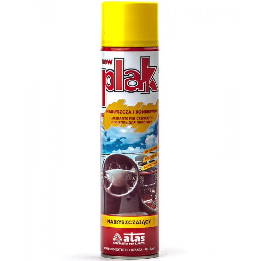 Полироль ATAS Plak призначається для догляду за панеллю приладів та іншими пластиковими деталями салону автомобіля очищує пластикові поверхні має антистатичний ефект що сприяє відштовхуванню пилу та запобігає зношуванню пластикових деталей.