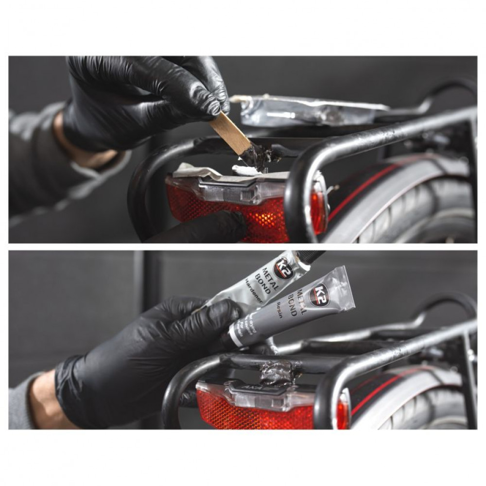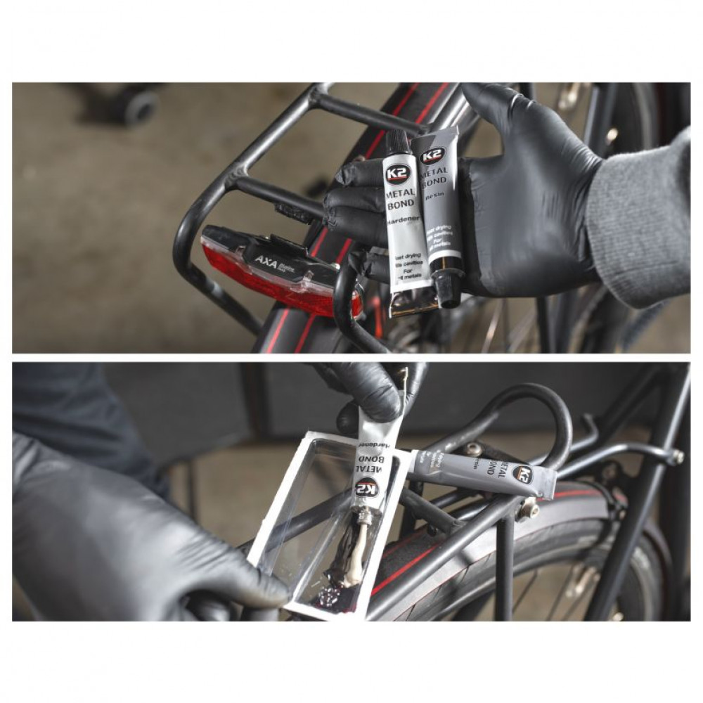 Двокомпонентний епоксидний клей, за допомогою якого можна склеювати металеві деталі. Високоефективний, швидко схоплюється, має виняткові показники міцності після застигання. Після застигання піддається механічній обробці. Підходить для використання в промислових та побутових цілях. Клей для ремонту металевих виробів K2 Metal Bond можна придбати в Україні для застосування в майстернях, на виробництві та в домашніх умовах. Отримана сполука характеризується хімічною стійкістю, піддається свердлінню, шліфуванню, підпилюванню та різьбленню. Твердне подібно до сталі.