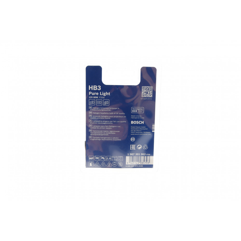 Автолампа HB3 12V 60W P20d Pure Light