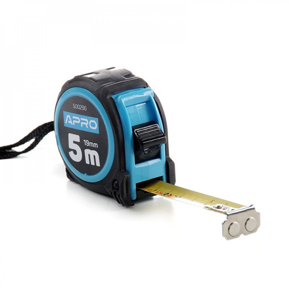 Рулетка 5 м*16 мм APRO обгумована з магнітом