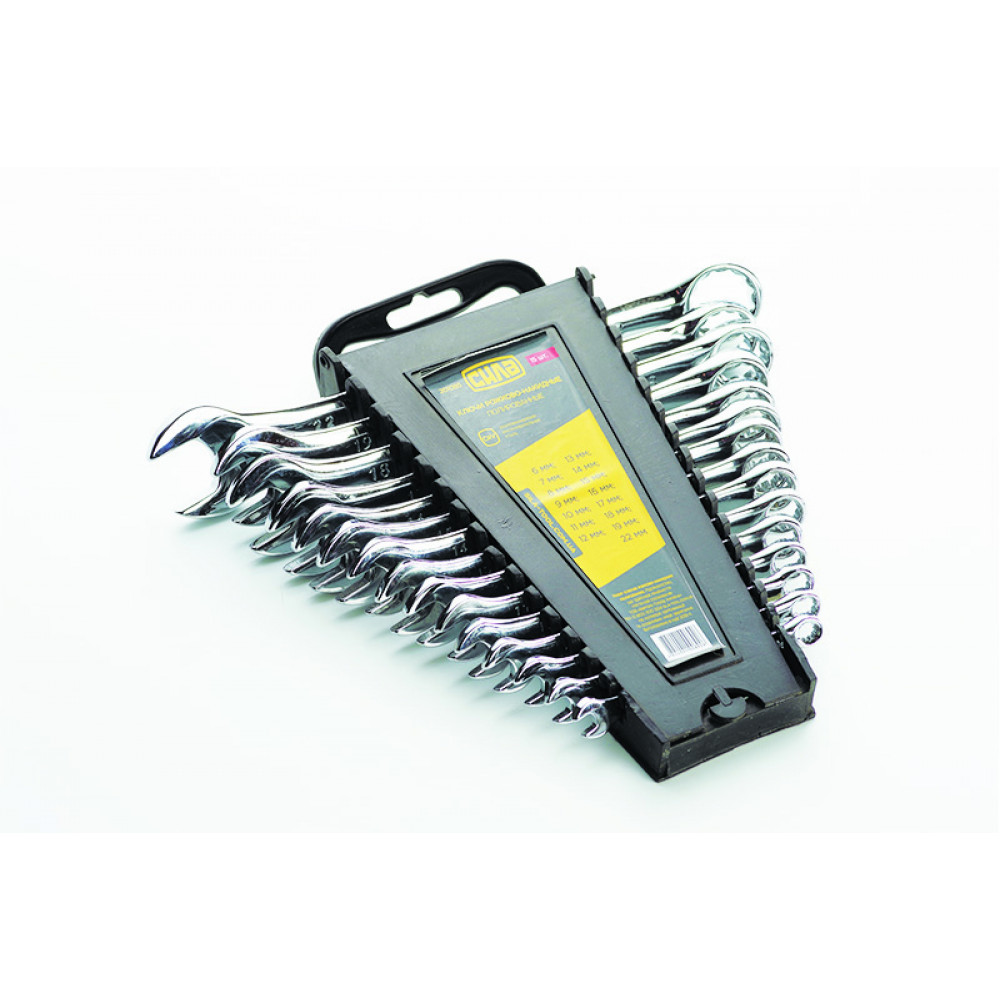 Набір ключів ріж-нак 15 шт СИЛА (6-19, 22 мм) поліровані CrV на планшетці