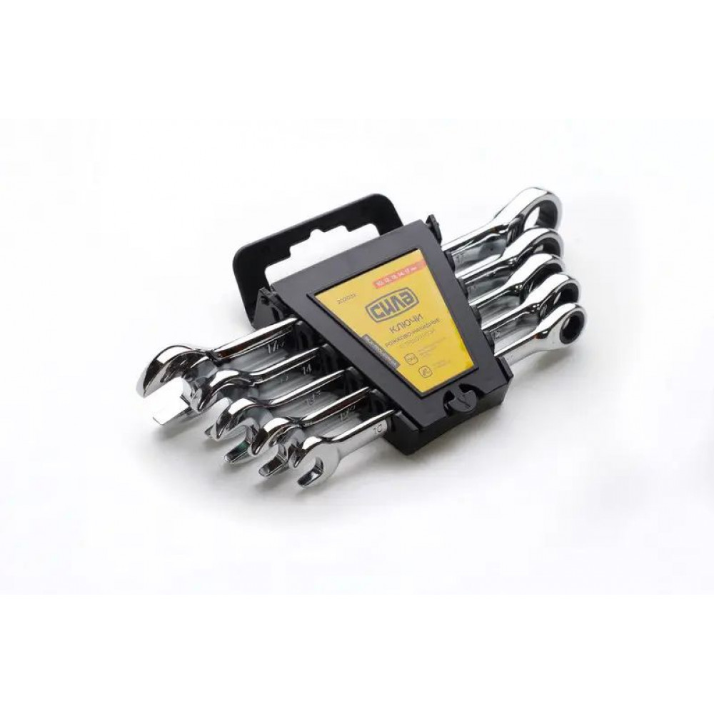 Набір ключів ріж-нак з тріскачкою 8шт СИЛА (8, 10, 12, 13, 14, 15, 17, 19мм) CrV в чохлі