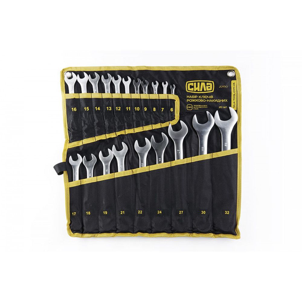 Набір ключів ріж-нак 20 шт СИЛА (6-19, 21, 22, 24, 27, 30, 32 мм) CrV тканинний чохол